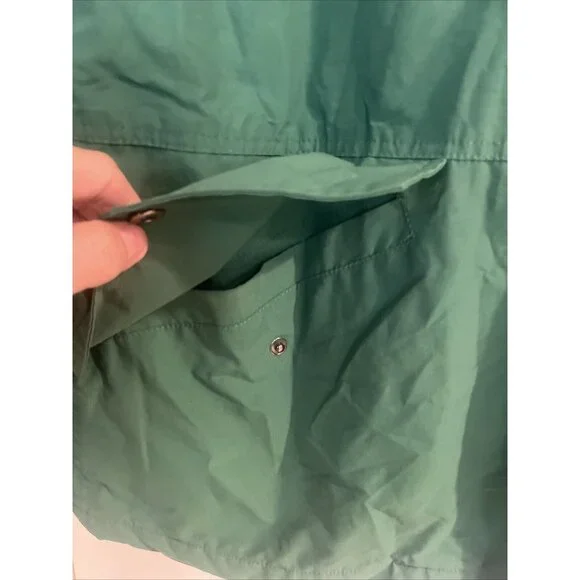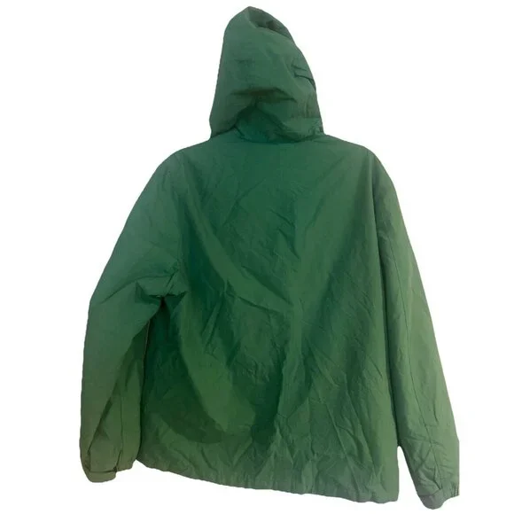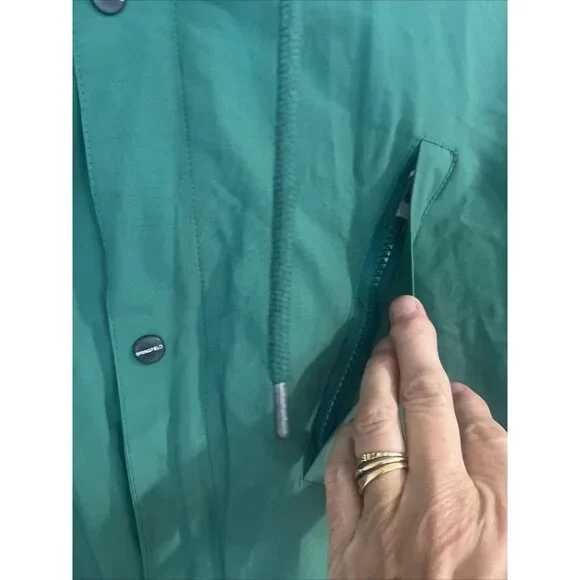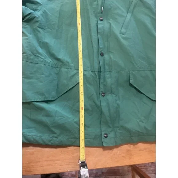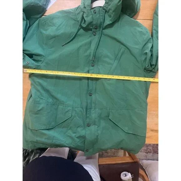 This is a beautiful Kelly Green parka for men size extra large. This is a Spanish brand of clothing. This is a zipper and snap closure with attached hood with drawstring. There are three pockets on the front two pockets with snaps and one pocket with a zipper hook and loop adjustable cuffs. This is lined with soft lining and drawstring inside. This is preowned in excellent condition no rips, tape tears or stains