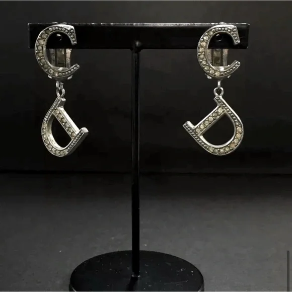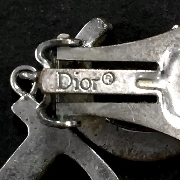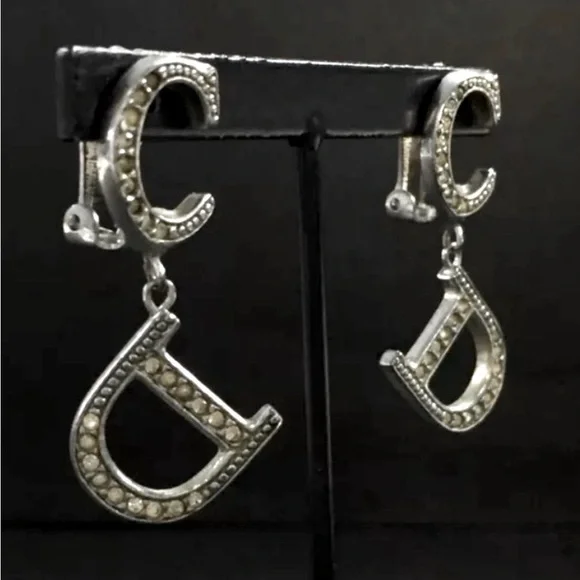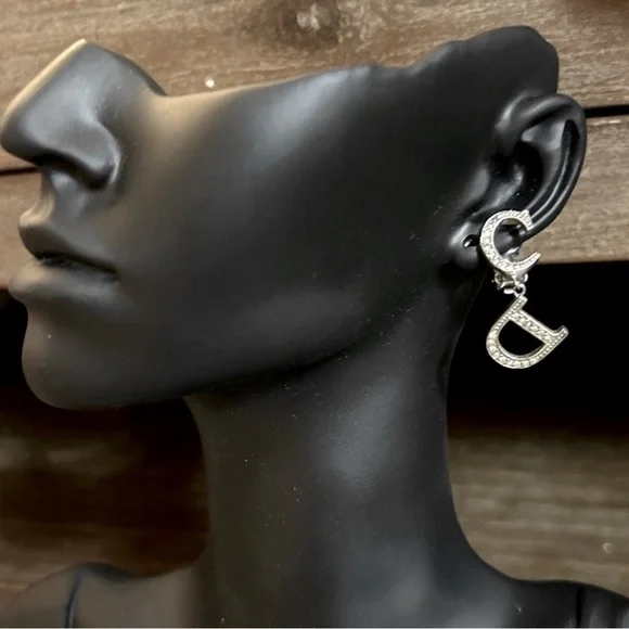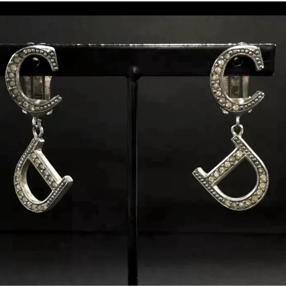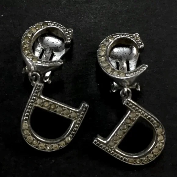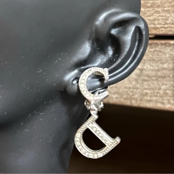 Gorgeous vintage Dior clip-on earrings featuring the iconic “C” and “D” logo design. Adorned with sparkling rhinestones in a silver-tone finish. Marked “Dior®” on the back clasp for authenticity. These statement earrings add timeless elegance to any outfit.Condition: Preloved with some tarnishing and surface wear due to age, one stone missing as shown in pics. Backs function securely.Clip-on style – no pierced ears needed.Approximate drop: ~1.5 inches#Dior #ChristianDior #VintageDior #DesignerEarrings #CDLogo #StatementEarrings #RhinestoneJewelry #LuxuryVintage #ClipOnEarrings # #ShopStellaJules