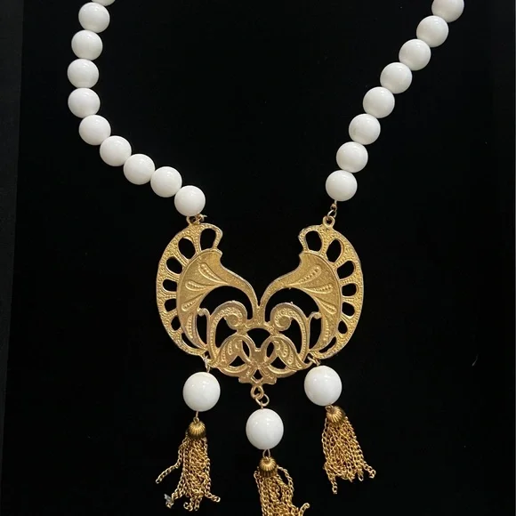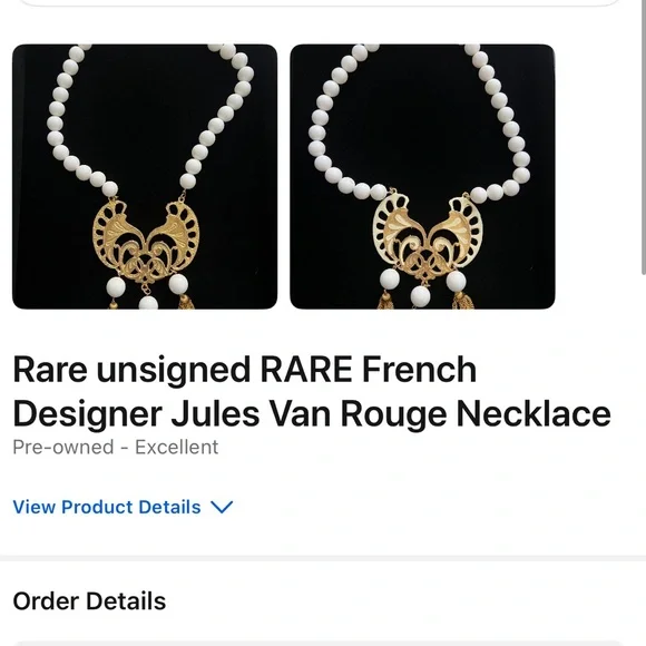 This exquisite necklace features elegant white beads and intricate gold accents, perfect for elevating any ensemble with a touch of sophistication. Rare French Designer Jules Van Rouge piece