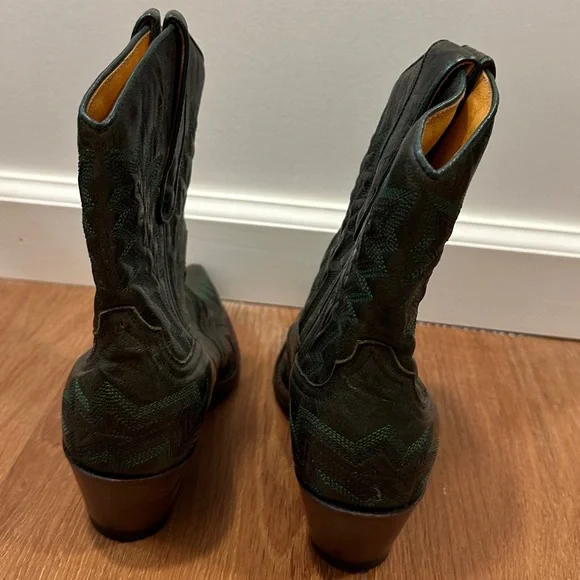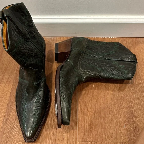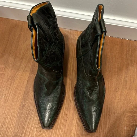 Brand new never worn or used. No damages or defects. No boxThis was a limited issue Judy Western boot with black/green detail. Pointed toe.Leather upper, leather lined, leather/rubber outsole. Goodyear construction. Made in Spain. Please examine pics closely. Lighting can affect how the item will appear vs in person. Feel free to ask questions. Open to FAIR and REASONABLE offers.Low ball offers declined.