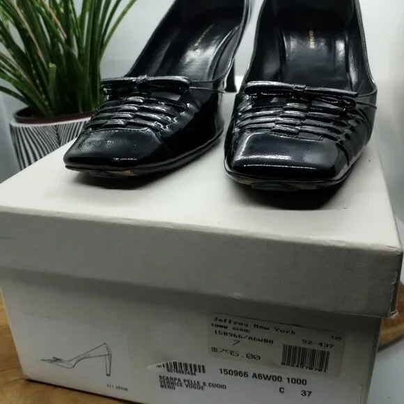 BALENCIAGA Vernice Vogue Size 7 Euro 37 Black Patent Kitten Heels