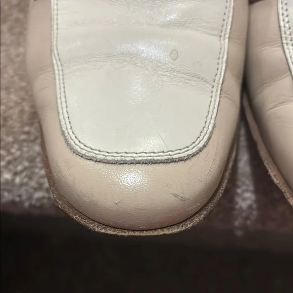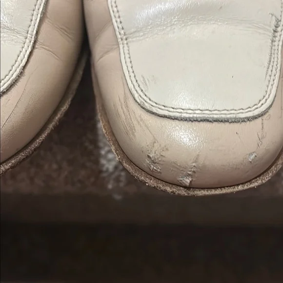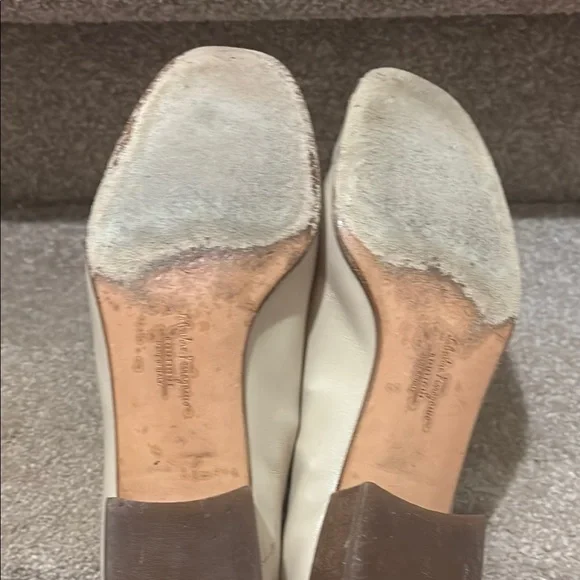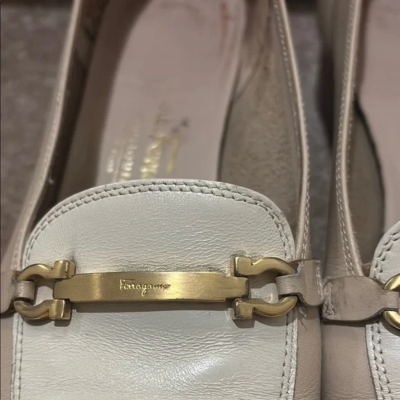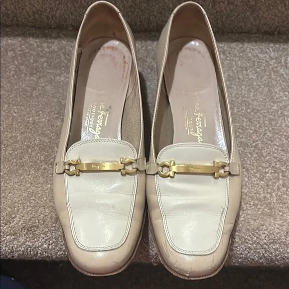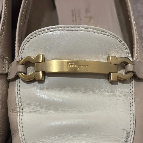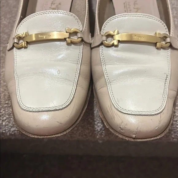 Beautiful Spring/Summer shoe. Step out in style with these elegant white loafers from Salvatore Ferragamo. Perfect for any occasion, these shoes offer both comfort and sophistication.Good condition with some marks in front toe.