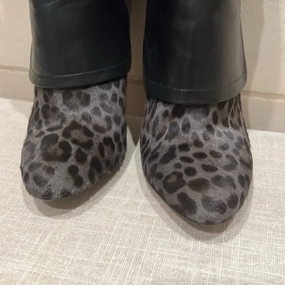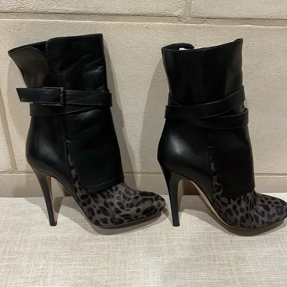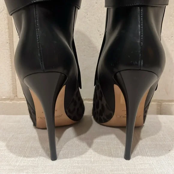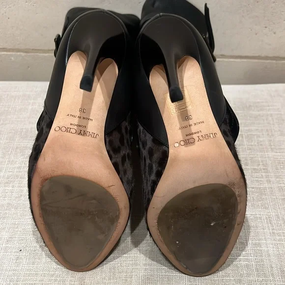 Elevate your style with these stunning Jimmy Choo high heels, crafted in Italy with premium materials. Featuring a chic leopard print design with sleek black leather accents, these shoes exude sophistication and glamour.•Brand: Jimmy Choo•Size: 38 (Equivalent to US 7.5-8)•Condition: Gently worn, minor wear on the sole (see photos for details)•Material: Leather & suede with leopard print•Heel Height: Approx. 4 inches•Made in ItalyPerfect for any special occasion, night out, or elevating your everyday look!