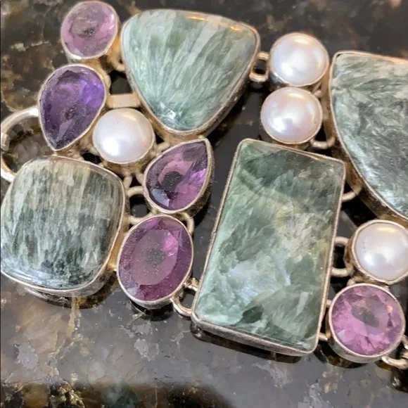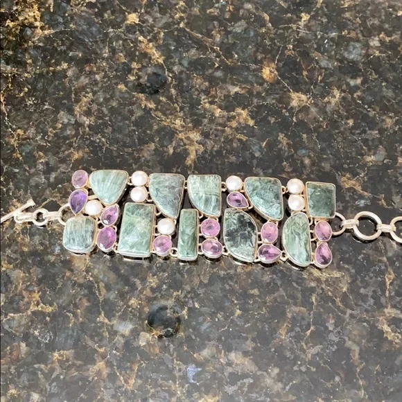 Genuine Jade and Amethyst Sterling Silver plated Bracelet. NWT from my Boutique.