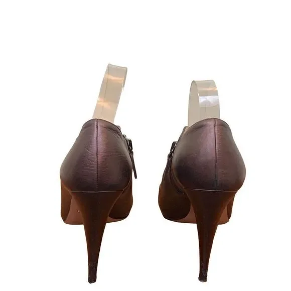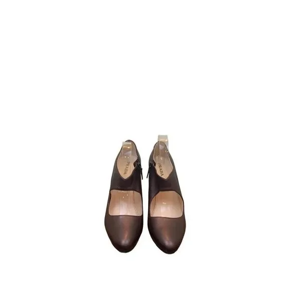 Prada Women´s Brown Leather Exposed Zip Closure Platform Pumps Size 41