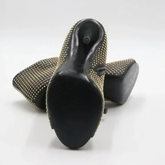 These Giuseppe booties are the perfect match for you! They are in good condition with only minor use. Leather is in good condition with no rips. Missing stud on left shoe. ( please look at all photos for more details ) Insoles have minor separation around heel area. Bottom soles have been retouched by our professional cobbler. Heel tips have minor scuffs from use. Overall in great condition!Item Specs:Made in Italy.Stamped size 39.5 fits 9.5Heel height 4.5" inchesColor:BlackHeel Height:Ultra High 4"+Heel Style:StilettoSize:EU 39.5 (Approx. US 9.5)Type: BootsPlease note that most items that we carry have been previously owned. Unless otherwise stated, they may not be in absolute flawless condition. We include detailed pictures and give accurate written descriptions.. please go over it carefully.