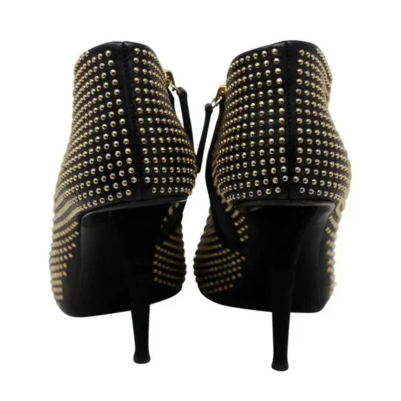 Black Leather Gold Studded Boots/Booties