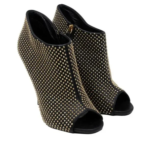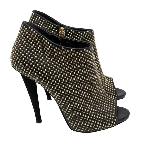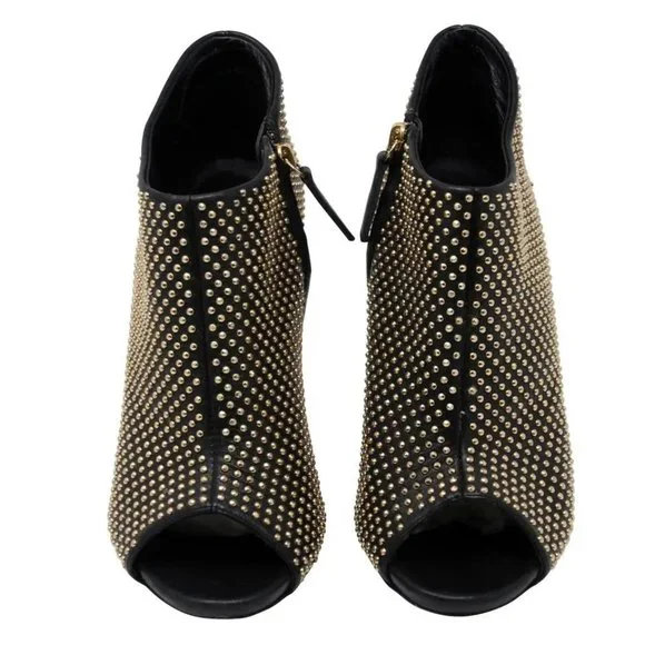 These Giuseppe booties are the perfect match for you! They are in good condition with only minor use. Leather is in good condition with no rips. Missing stud on left shoe. (...