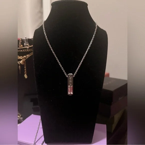 Versace Geometric Crystal Pendant Silver Necklace with box & dust cloth EUC