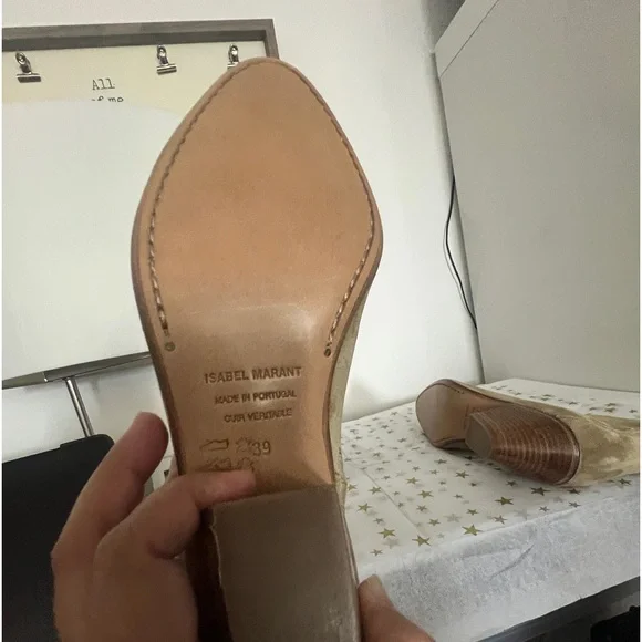 New without tag Isabel Marant Dacken Suede Calf Skin Ankle boots.100% CalfskinMEASUREMENTSBoot length 5.07 Inches, Boot width 10.92 Inches, Heel height 2.15 InchesDETAILSsuede effect, no appliqués, solid color, round toeline, cuban heel, leather lining, leather sole, contains non-textile parts of animal origin.No hole no rip Brand new never worn condition.Size:39EU (9B)Color :Green