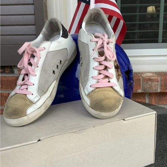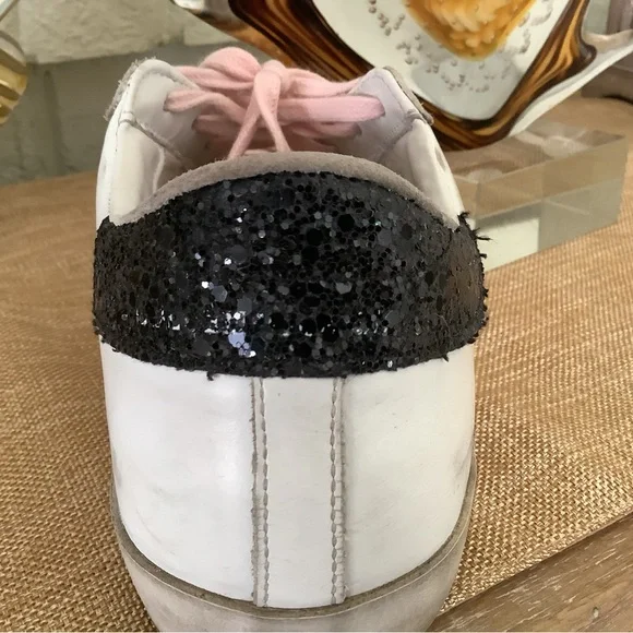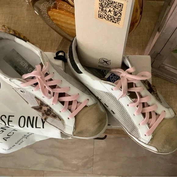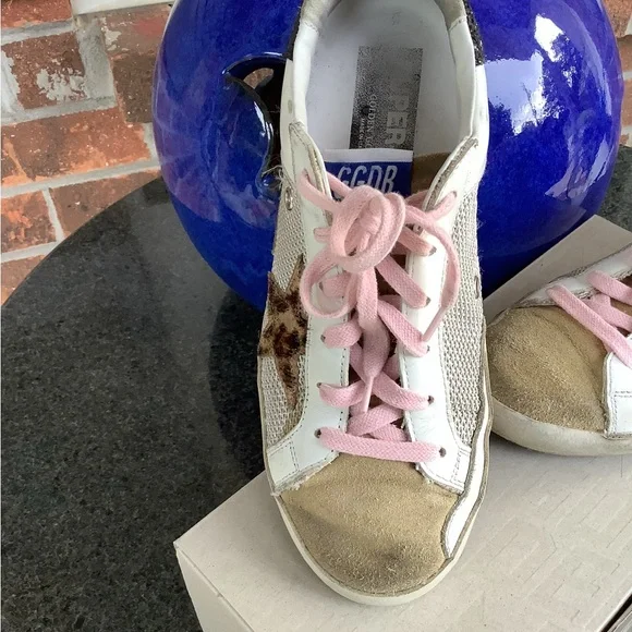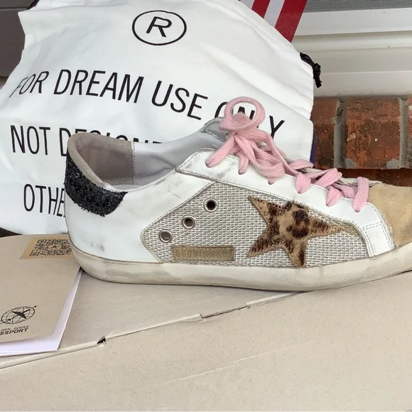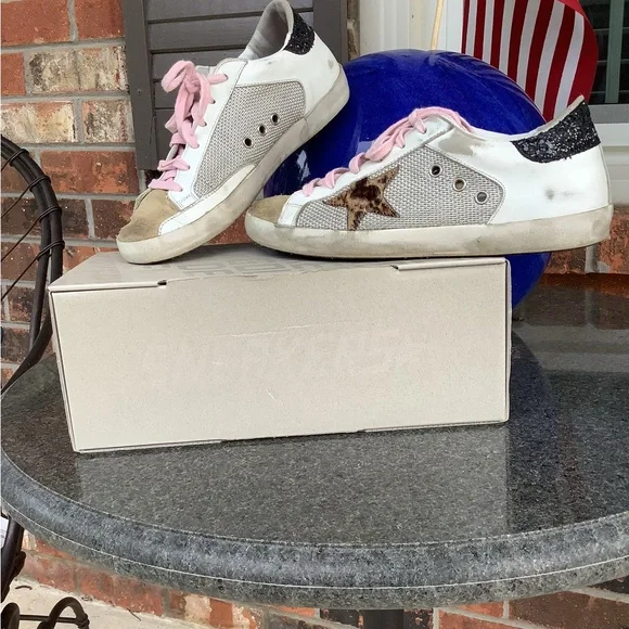 Golden Goose Super-Star Double Quarter w/Leopard Horsy Star, Glitter Heel Shoes.