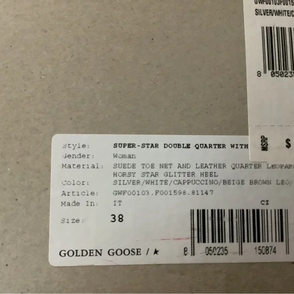 Silver/White/Cappuccino/Beige Brown Leopard Women’s size 38.Very good condition, only worn with socks, no bare feet.Bought at Bergdorf-Goodman.Comes with a shoe bag, box.