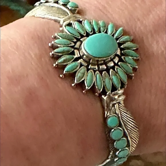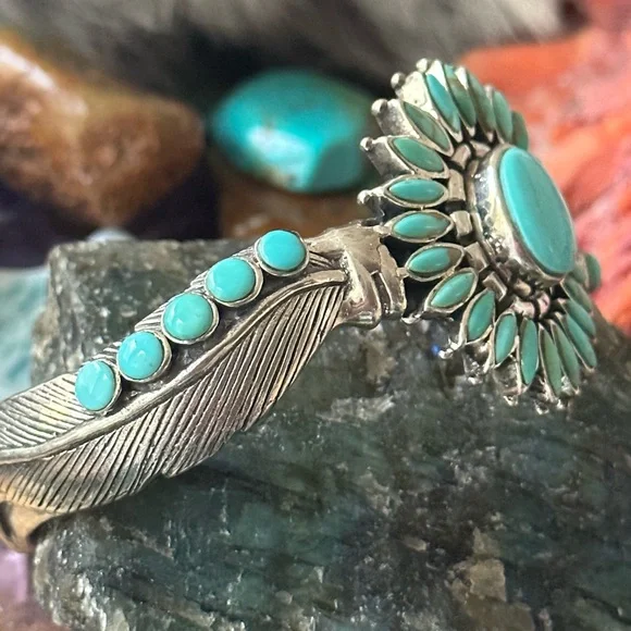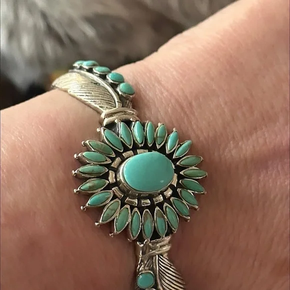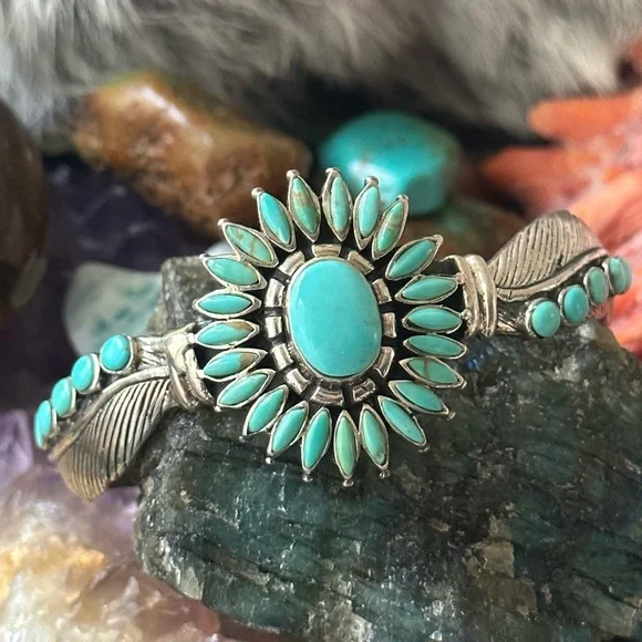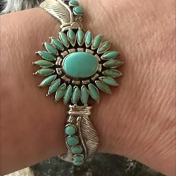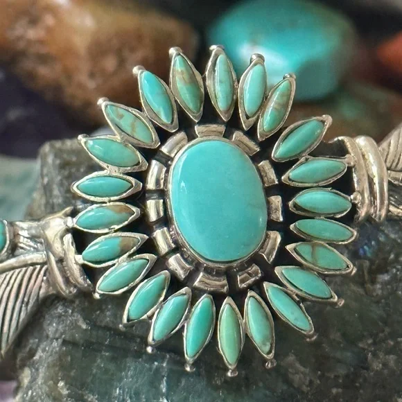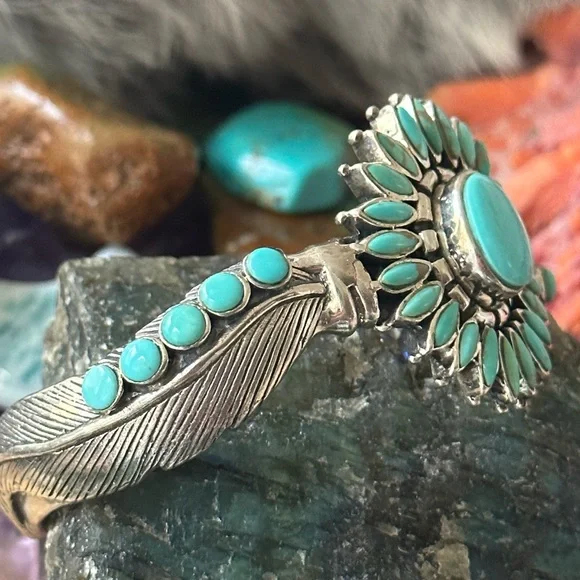 Turquoise Pettit point solid sterling silver flower cluster cuff