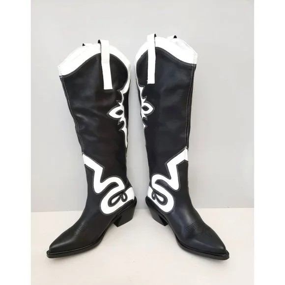 New Without Boxsoles marked to help prevent store returnsAlohasMount Dallas BootsBlack & WhiteEUR Size 38Giddy up, girls! Cowboy boots are back and they are not going anywhere....
