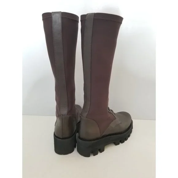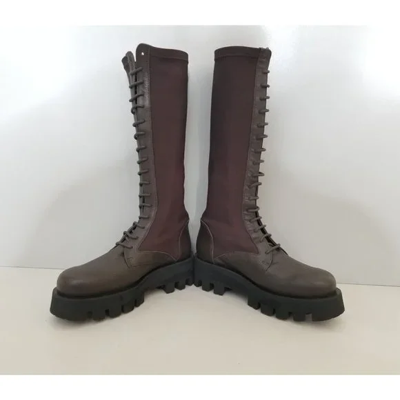 Paloma Barcelo Agneta Lace Up Knee Boots in Brown Size 37
