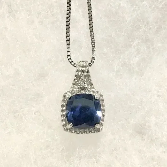Sterling Silver Blue Sapphire and Genuine Diamond Accent Pendant Sterling Silver Box Chain NecklaceApproximate Measurements:Pendant: 1/2" Necklace: 18" inches longSterling Silver...