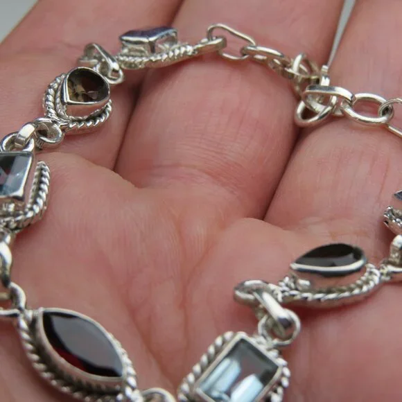 Sterling Silver Citrin Garnet Topaz Multi Gemstone Bundle of 2 Bracelet