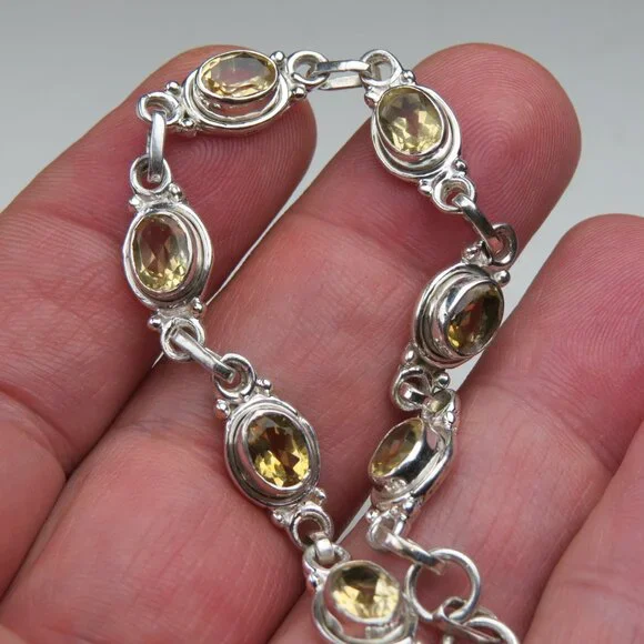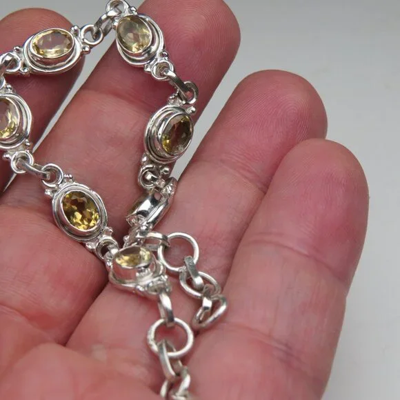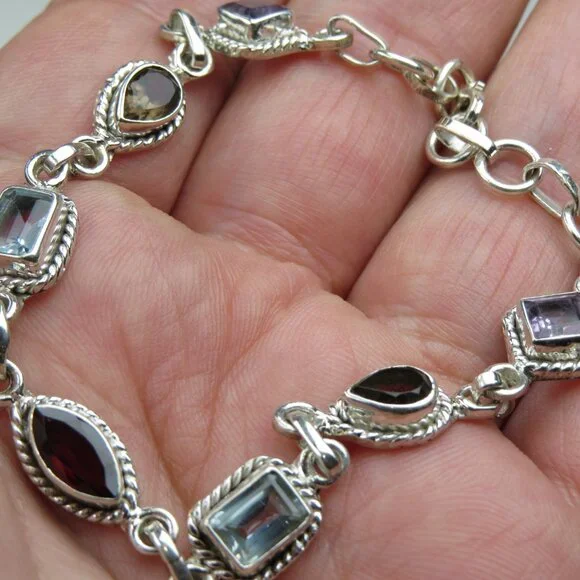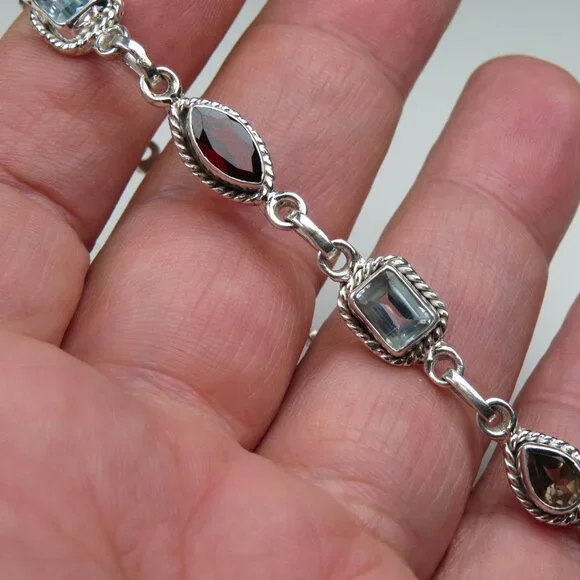 Sterling Silver Citrin Garnet Topaz Multi Gemstone Bundle of 2 Bracelet7 & 8"SKU-0006
