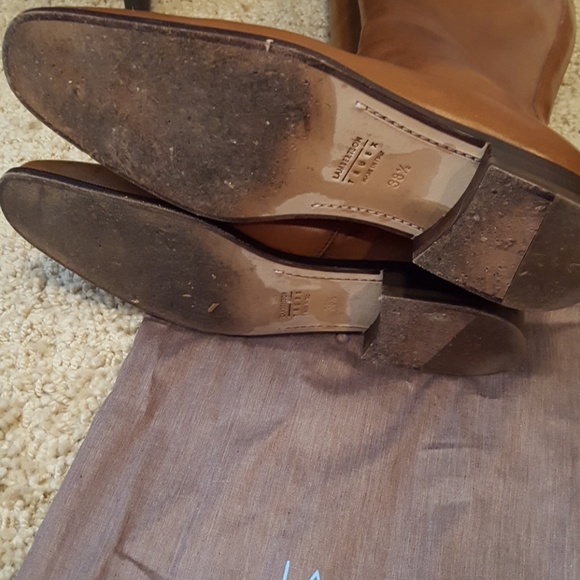 Size 38.5 or 8 1/2 us, soft supple leather boots from Lambertson truex.Lined with supple blue leather. 16 inches tall . Beautiful boots,never abused. Moving to very warm climate, hate to part with them.