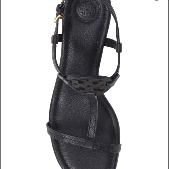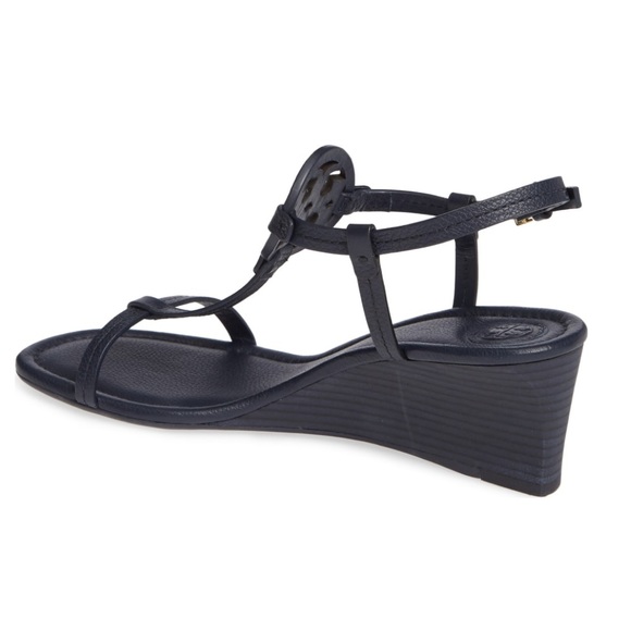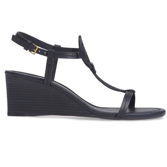 New! Tory Burch Miller Wedge Sandal - Black Leather - 100% Authentic