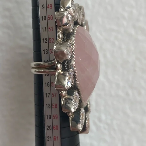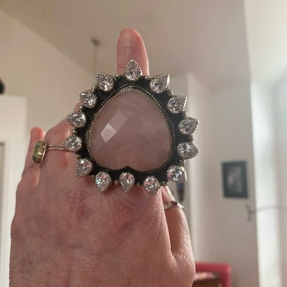 Native M&S Rose quartz, crystal quartz huge sterling ring
