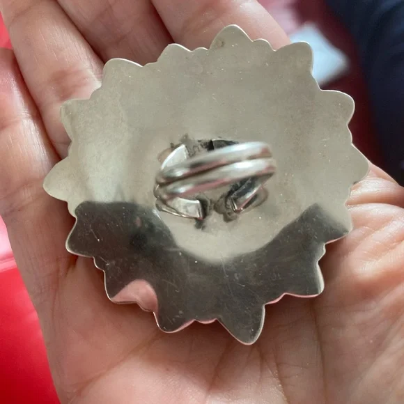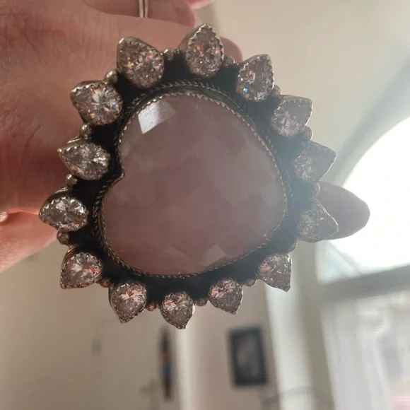 Size 7. Gorgeous bench made rose quartz huge heart and crystal quartz petals . Signed Sterling in the back absolutely beautiful ring it is absolutely huge. The ring is a fine statement piece. Sturdy well built. Guaranteed stones and 925 sterling silver .Firm price already greatly reduced for this listing . Perfect Mother´s Day gift#M&S