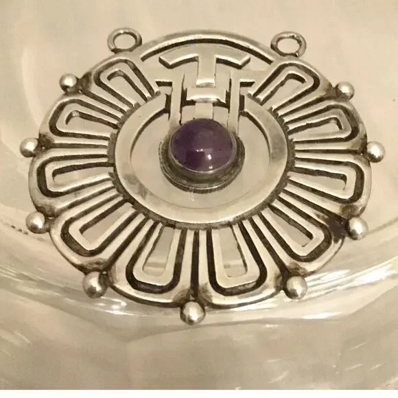 Rafael Melendez Taxco 980 Sterling Silver Amethyst PENDANT Mexico Pre 1946