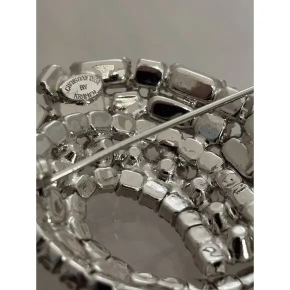 Vintage Christian Dior By Kramer Rhinestone Rhodium plated Brooch/Pin 50s RARE