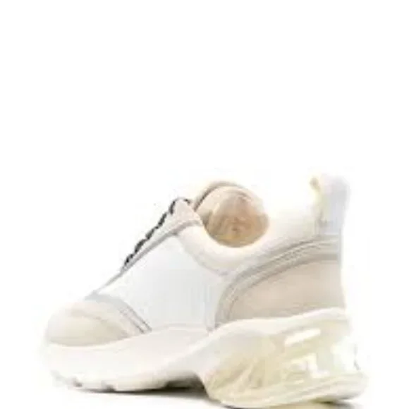 signature-T-motif lace-up sneakers featuring ivory white, calf suede, panelled design, signature Double T motif, front lace-up fastening, transparent panel detail and ridged rubber sole.CompositionOuter: Calf Leather 100%, Fabric 100%Lining: Calf Leather 100%Sole: Rubber 100%Leather: MeshSuede trimLogo patch at sideLace-up closureRound toeRubber soleImported, VietnamFrom Major upscale depart storePet and smoke free home