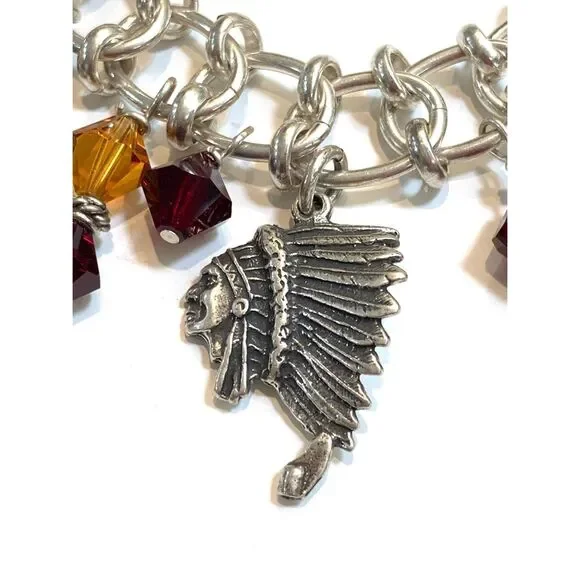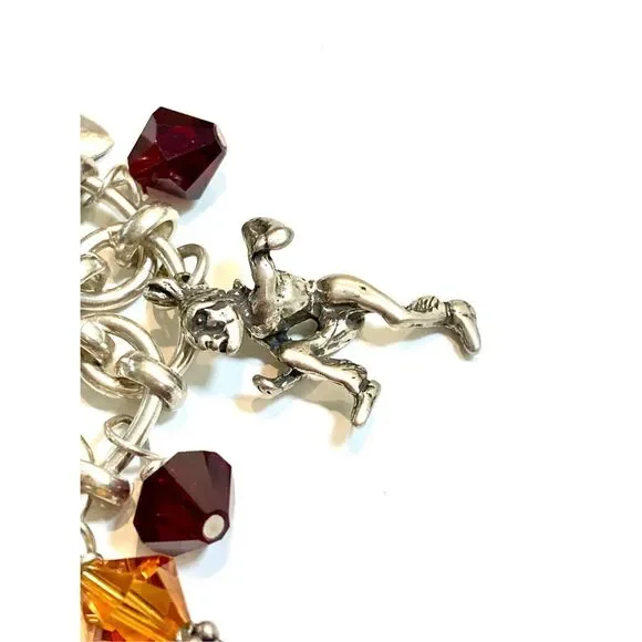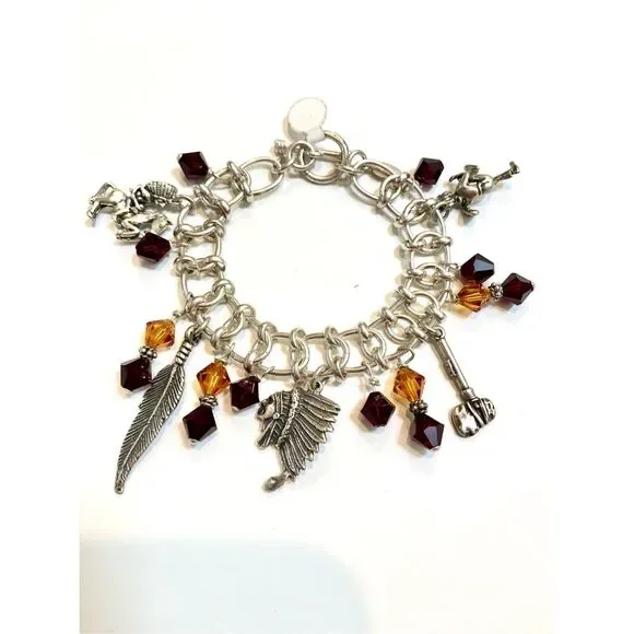 Vintage Handmade Southwestern Charm Bracelet with Swarovski Crystals, room for additional charms.Red Siam and Topaz Swarovski Crystals with 5 Southwestern Sterling Silver Charms, Toggle ClaspSize 7 1/2"#fsu color #college.925 Sterling Silver Jewelry Bracelet