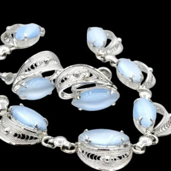 MCM Vintage Alice Caveness Moonstone Sterling Silver Necklace & Earring Set