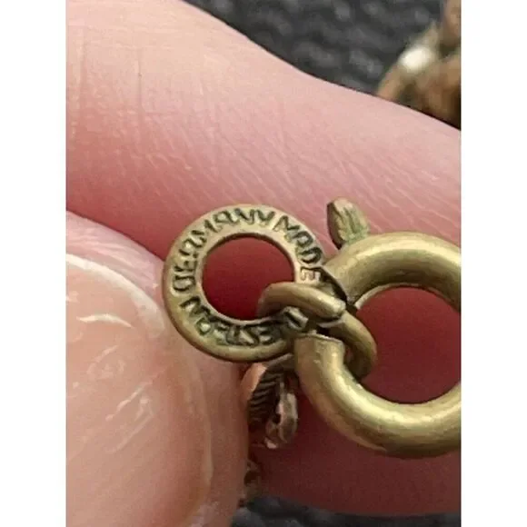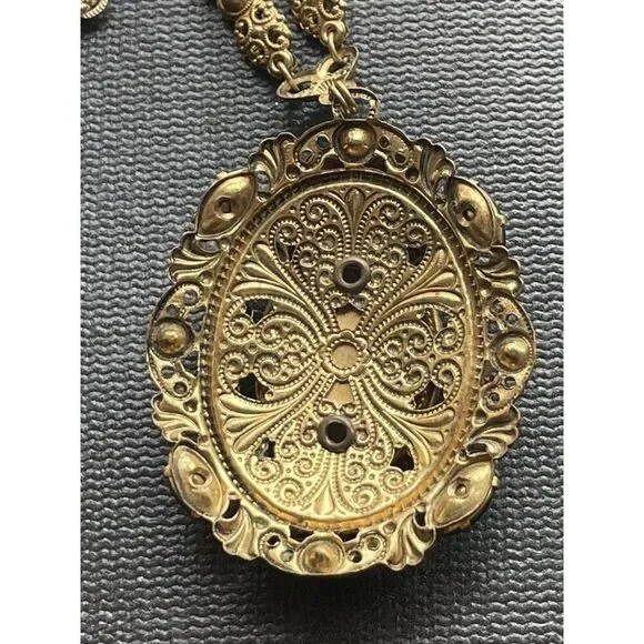 Vintage WEST GERMANY Necklace Green Rhinestone Faux Pearl Stone Filagree OrnatePreowned please see photos for condition and measurements. Sold as seen.