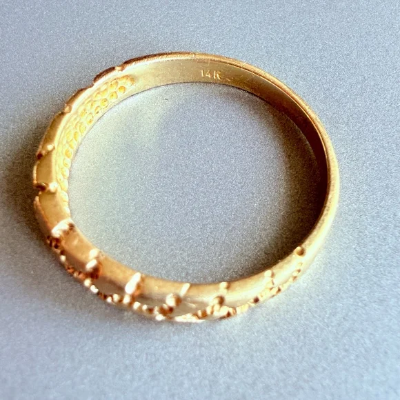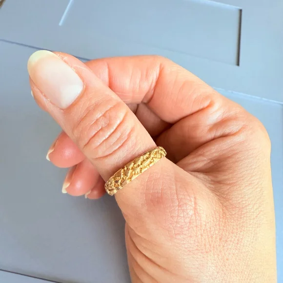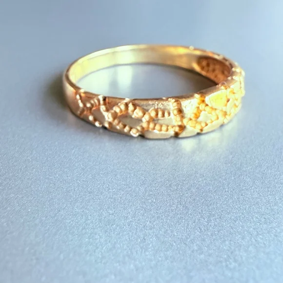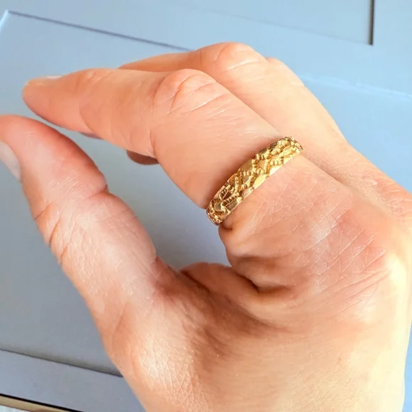 14K Solid Gold Nugget Slim Stacking Band Ring Size 9
