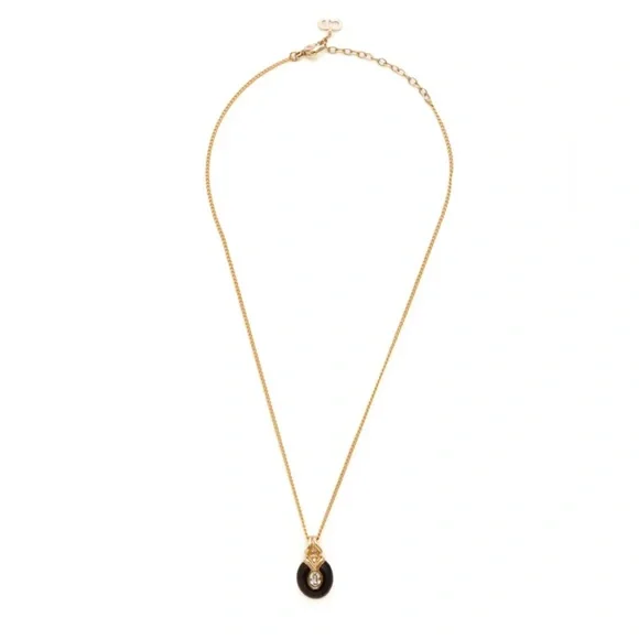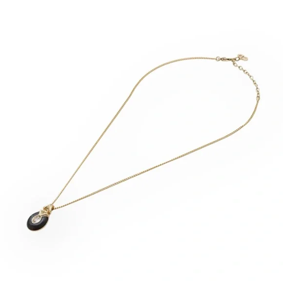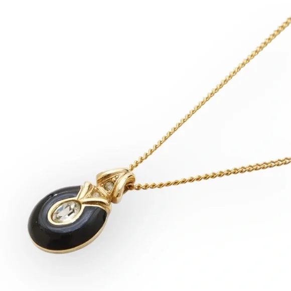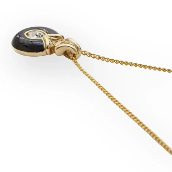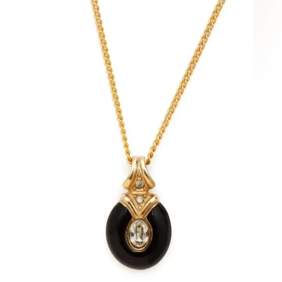 Authentic DIOR Black Enamel and Rhinestone Embellished Pendant NecklaceExcellent Preowned Vintage Condition with minimal signs of use. Review photos for condition.• gold...