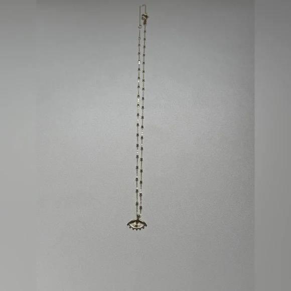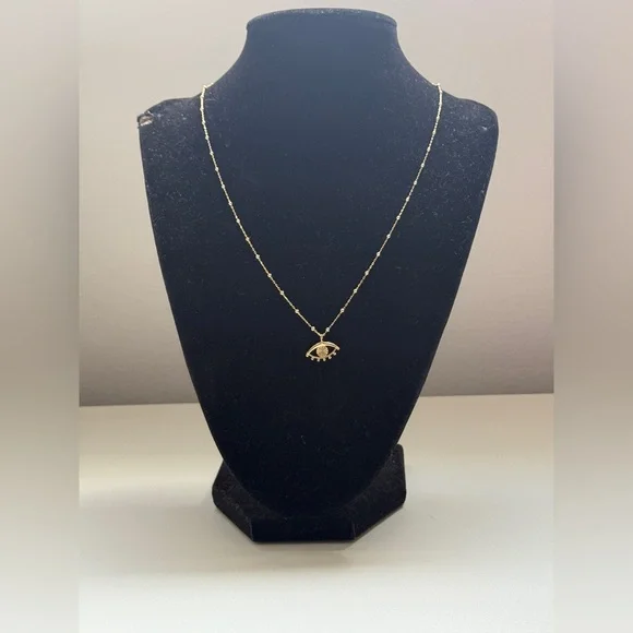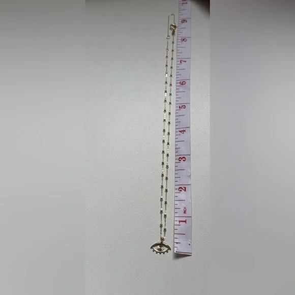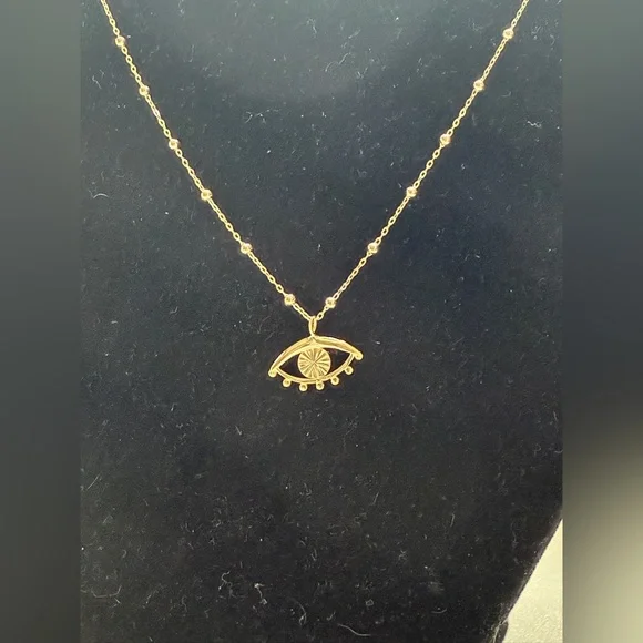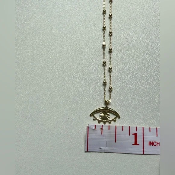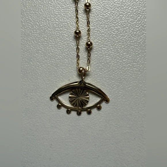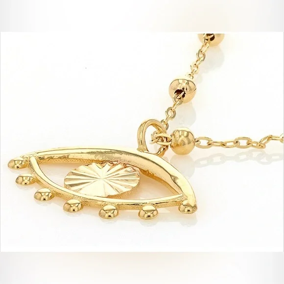 New-no box or tags10k Yellow Gold Evil Eye Pendant 18 Inch Bead Station Necklace. Measures approximately 7/16 of an inch in width, has a spring ring clasp, and is adjustable to be...