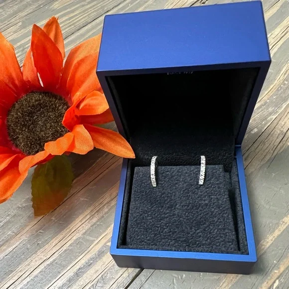 Pompeii Diamond hoops Great Christmas/ anniversary/ Birthday/ or just because I love you gift Width: 2Weight: 2 gMetal: 10k White GoldDiamond Carat: 0.45Diamond Cut: RoundDiamond Color: G/HDiamond Clarity: I2Diamond Treatment: Not EnhancedDiamond Quantity: 38Diamond Setting: ProngThis classic pair of matching earrings features 38 round brilliant cut natural diamonds. All diamonds are prong set in 10k white gold. The earrings are secured by a screw backing.