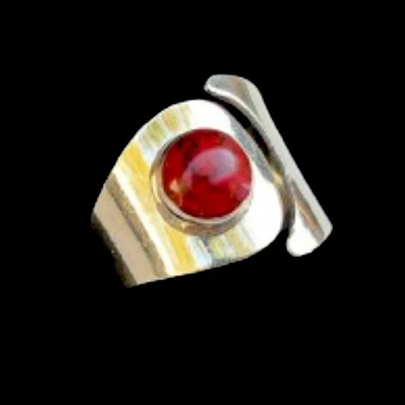 TAXCO Sterling Silver Red Jasper Cabochon Inlay Split Shank Band Sz 9