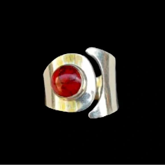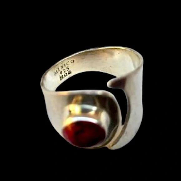 TAXCO Sterling Silver Red Jasper Cabochon Inlay Split Shank BandTAXCO Sterling Silver Split Shank Band with Red Jasper Cabochon InlaySize: 9Signed: Mexico, HOM, 925 Sterling...