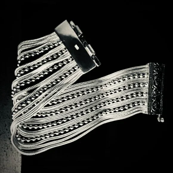 Handcrafted in Petra Jordan -Solid 925 Sterling Silver Bracelet - wide profile bracelet- delicate features - heavy solid 925 silver- ornate clasp- unique design- measures 7"l x...