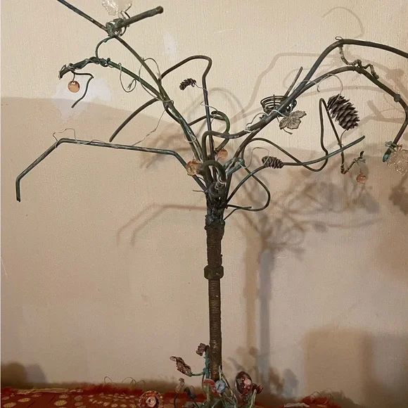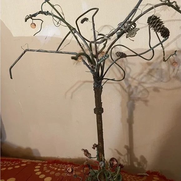 Mr treeMetal tree welded together ~ long lasting Real mini pine cones ~ a birds nest ~ a catapiler and more hanging out in the treeA bunch of different colored and kinds of...