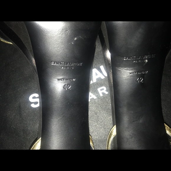 SAINT LAURENT Black and Gold Sandal Heels Size 42