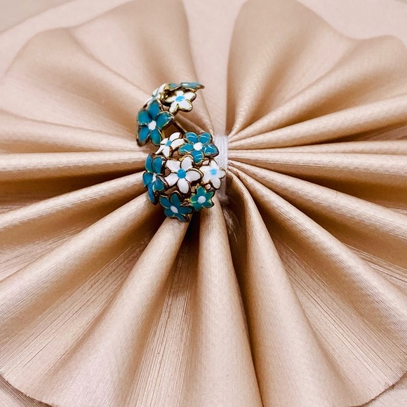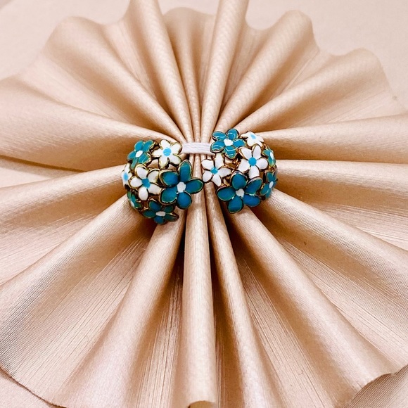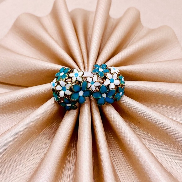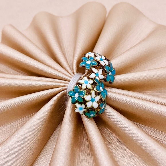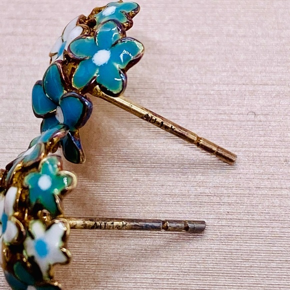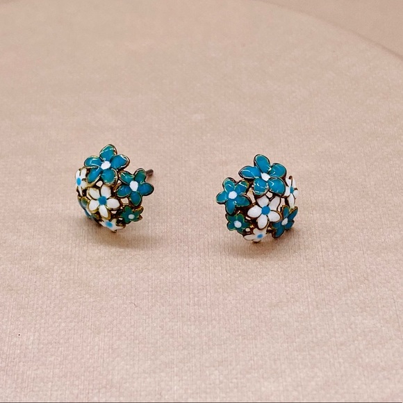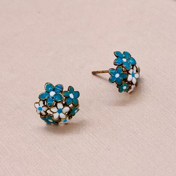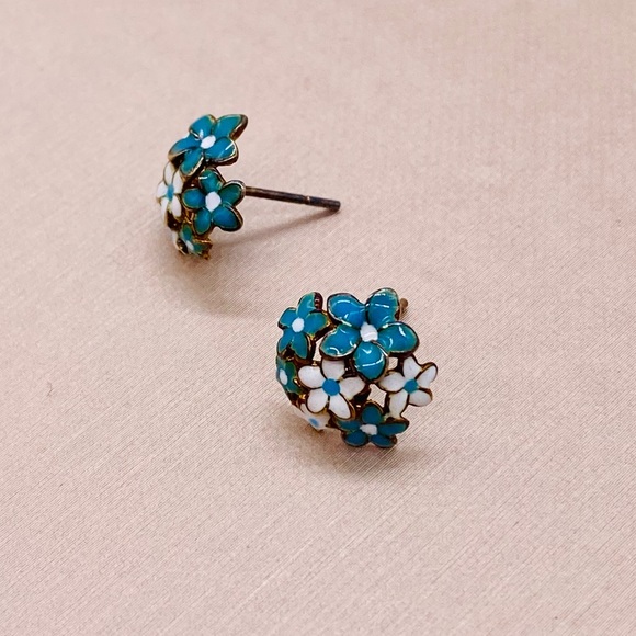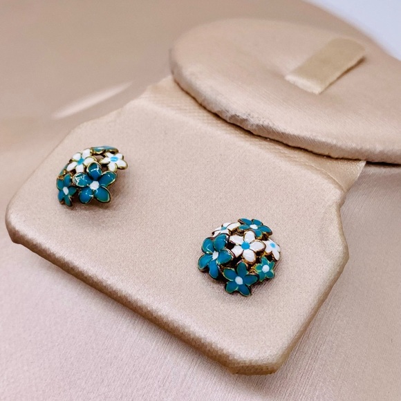 EUC Aurafin 14k Yellow Gold Domed Enamel Flower EarringsDetails:14k Yellow GoldBlue & White Enamel Flowers in a Dome ShapeApprox. Size: 11mm x 11mmPush Post BackTotal Weight:...
