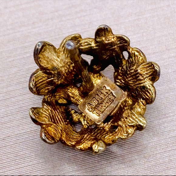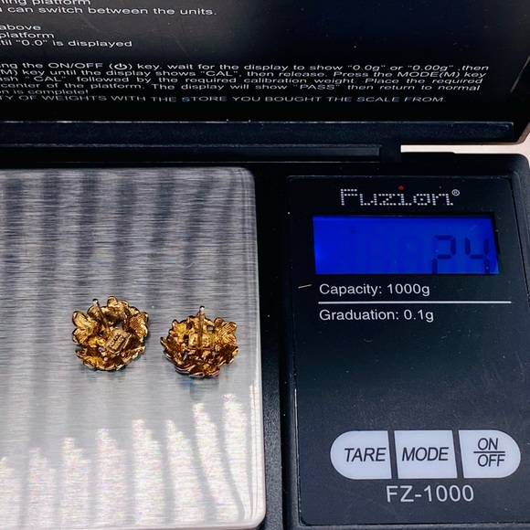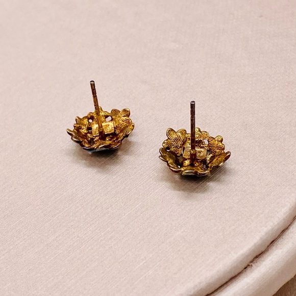 EUC 14k Yellow Gold Domed Enamel Flower Earrings