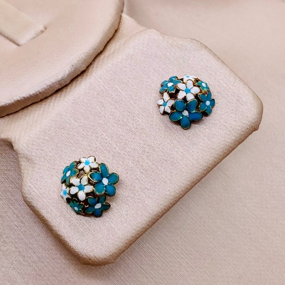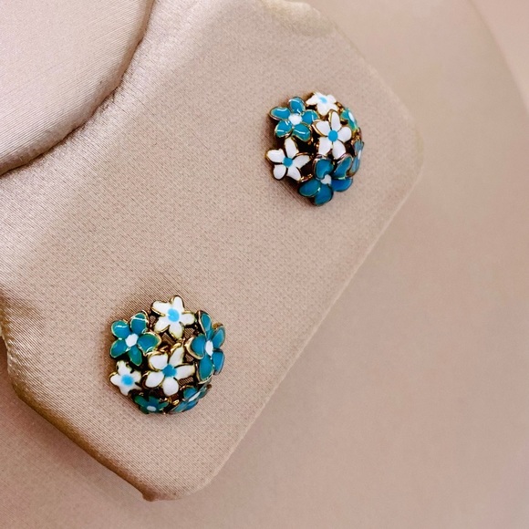 EUC Aurafin 14k Yellow Gold Domed Enamel Flower EarringsDetails:14k Yellow GoldBlue & White Enamel Flowers in a Dome ShapeApprox. Size: 11mm x 11mmPush Post BackTotal Weight: 2.4gFully HallmarkedAurafin TurkeyCondition: Excellent lightly used condition as photographed. Listing does not include the backs to the earrings, standard earring backs will fit. See images for overall condition.** ’s tagged for exposure. **