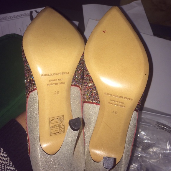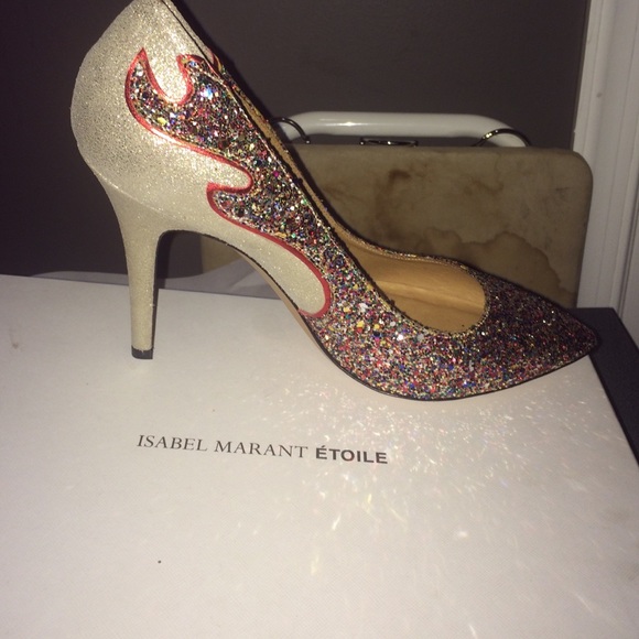 Never worn, and brand new! They have lots of shimmer in the shape of a flame and are not too high. After trying them on they feel so comfy! Theyre an Italian size40 which would be a US 10.5 (for womens.) Lastly, they will come with a bag for you to carry them in as seen in the pics. And the way they shimmer in the light is so beautiful