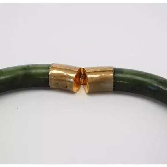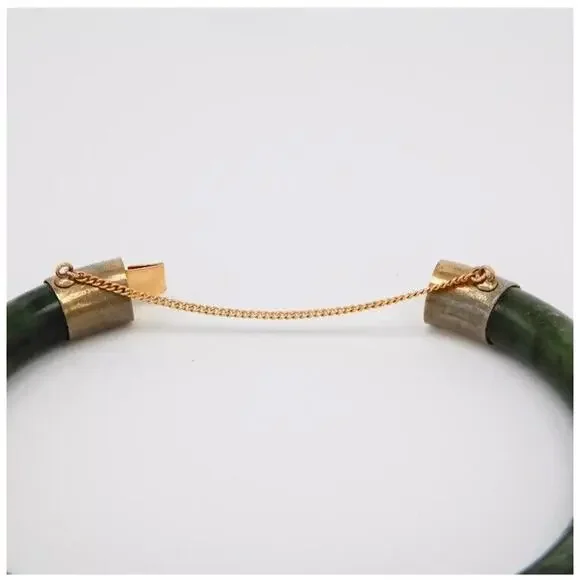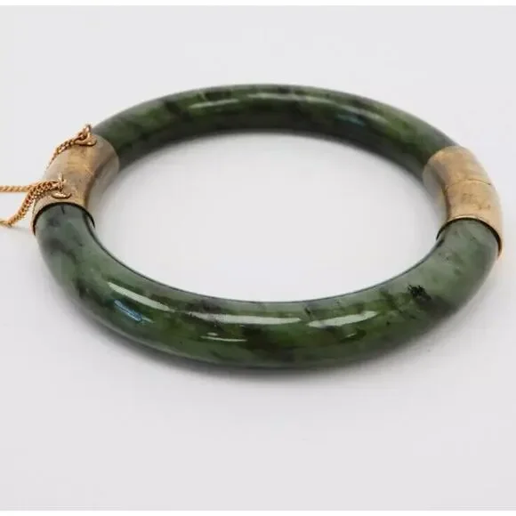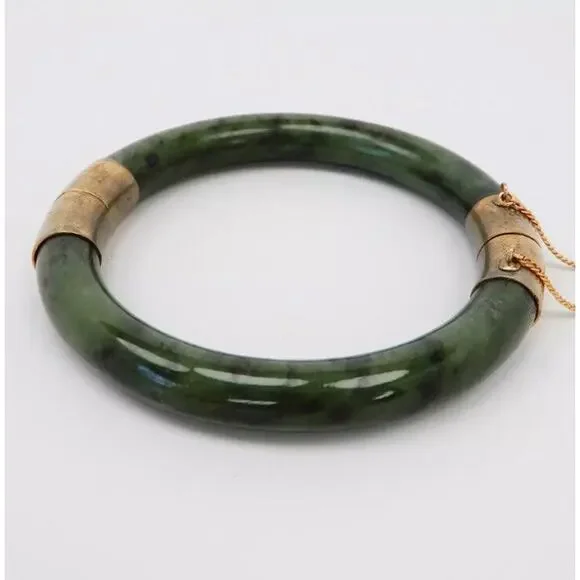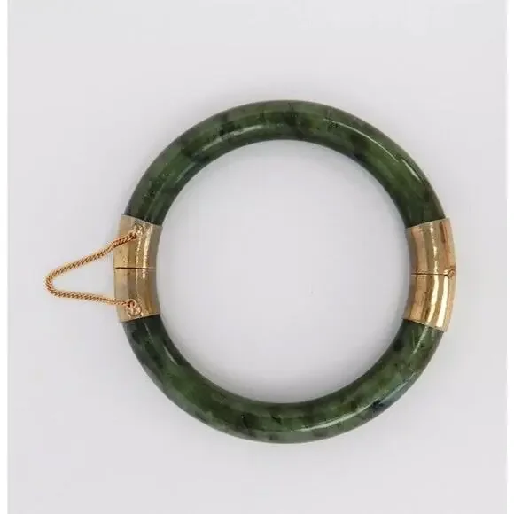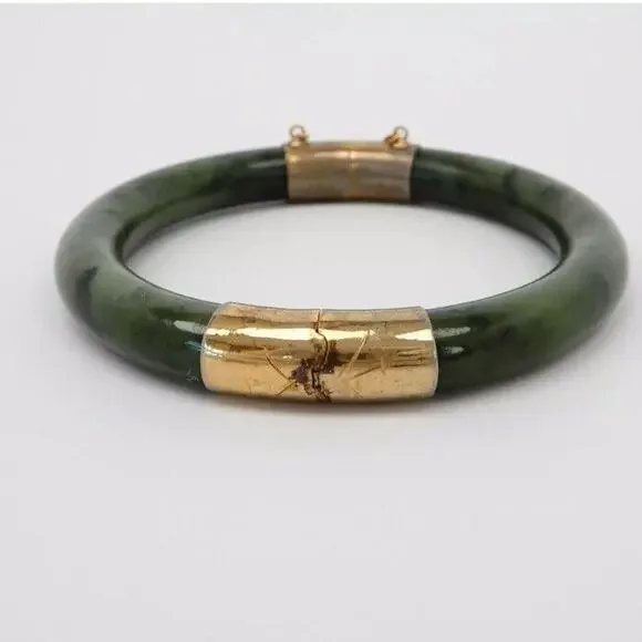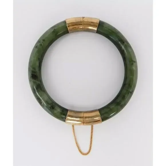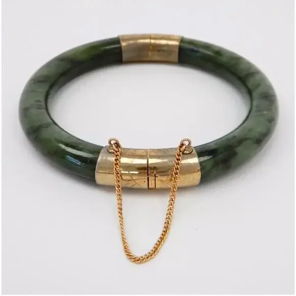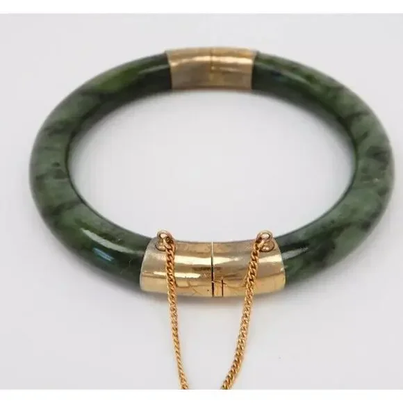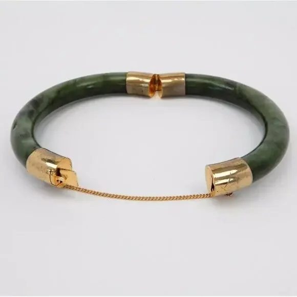 Vintage Green Jade Jadite Bracelet Hinged Bangle W‎ Gold Closure