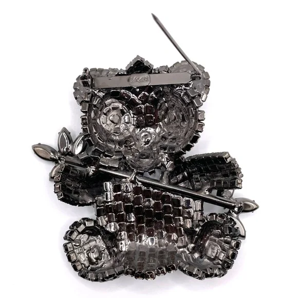 Brooch Chris Crouch Moans Couture Signed Rhinestone Panda Bear Pin 4"