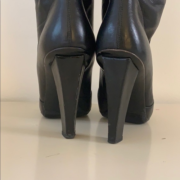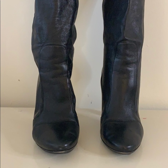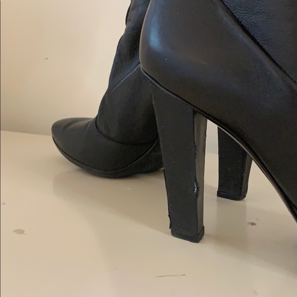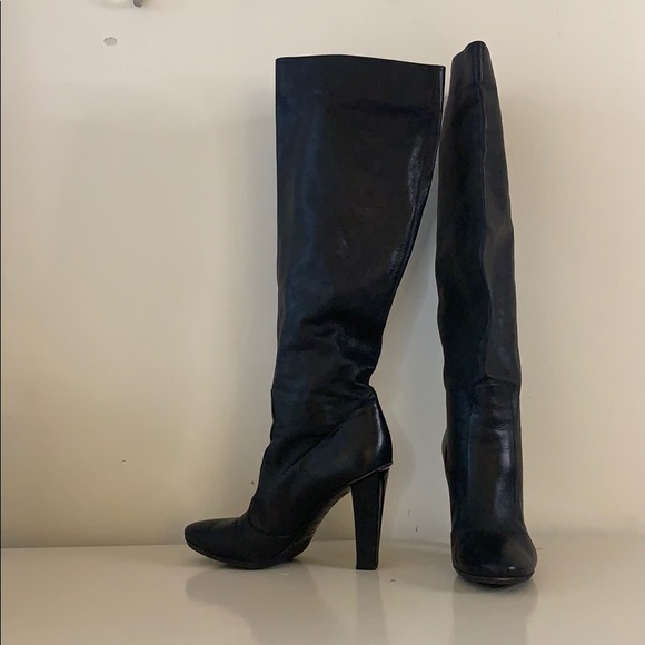 Jimmy Choo tall soft pull-on black boots.4” heel14” shaft15” circumference around calfGood worn condition.Slight scuffs and scratches.Specifically on heels.Pictures...