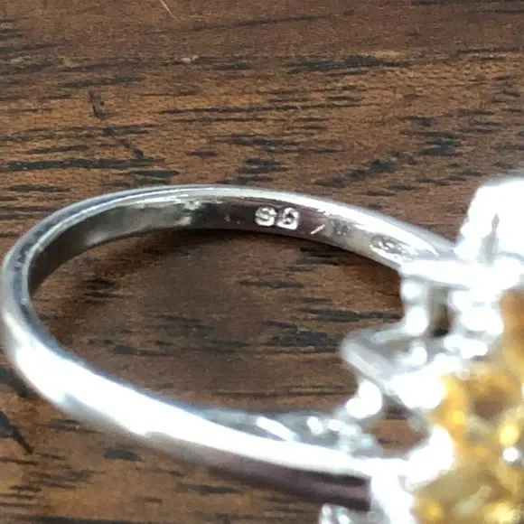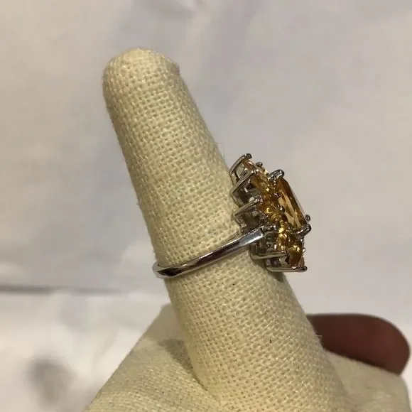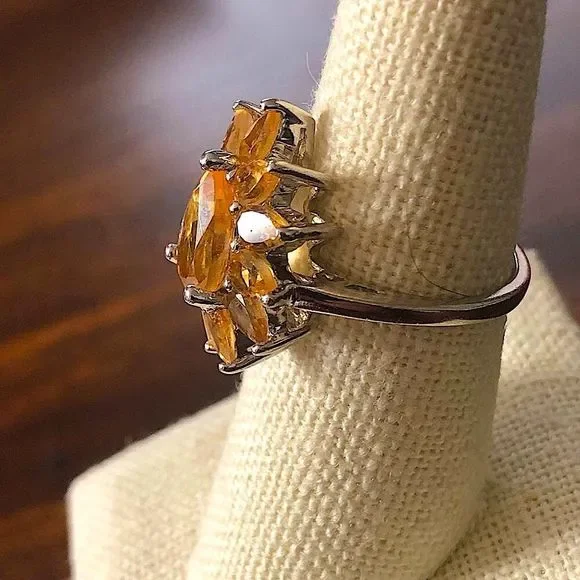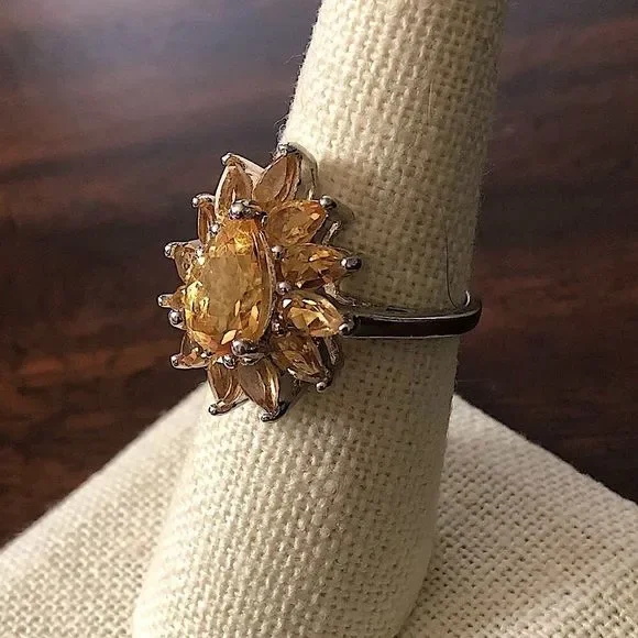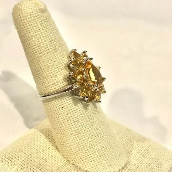 Faceted Golden Citrine Sterling Silver Flower Shaped Ring Sz 7
