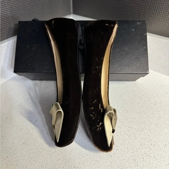 Emporio Armani olive suede flats with bow 38